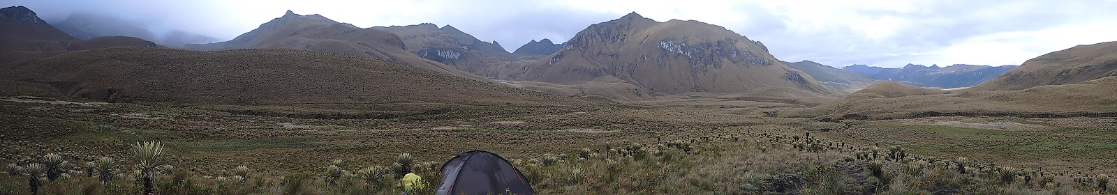 W nocy padało a więc namiot jest mokry, ogarniamy rzeczy i idziemy do chatki gdzie na ogniu gotuję owsiankę którą spożywamy z bananami i panelą. Po śniadaniu pakujemy się i odprowadzam Margarittę do bramy wyjściowej z gospodarstwa bo ja ruszam w góry wysoko w kierunku wulkanu Tolima a ona spowrotem do Cocora i potem do Cali gdzie spędziłem z nią prawie 3 tygodnie. Dziękuje więc jej za wyśmienicie spędzony czas i za to, że mogłem poznać tak dobrą osobę z tak pozytywną energią;) Mam nadzieję oczywiście na ponowne spotkanie tylko nie wiem kiedy no cóż teraz pozostaje jak narazie kontakt telefoniczno-facebookowy. Ja ruszam w stronę kolejnego gospodarstwa tzw. "Finca Primavera" stąd ok 7km ale zaczyna padać deszcz i wyżej droga jest cholernie stroma i błotnista z tym że błoto osiąga w niektórych miejscach na spokojnie 30cm także staram się iść jakoś omijając te miejsca i uważając żeby się nie przewrócić i nie upaćkać. Wyżej już dochodzę na wysokość 3590m do jakiegoś miejsca gdzie droga jest mniej błotnista i kończy się tropikalny las deszczowy a zazcynają tereny z żółtawymi trawami i jakimiś krzewami ale wyżej znów zaczyna się błoto bo ścieżka jest wydeptana przez muły i konie ale znajduję rozwiązanie bo po obu stronach ścieżki znajdują się wąskie pasma ziemi z trawą po których idę i przeskakuję z jednej na drugą i nie dlatego żeby nie było mokro w butach bo już jest ale dlatego żeby nie zaliczać poślizgów i się nie wypierdzielić. Cały czas pada deszcz odkąd wyruszułem tak więc jestem już cały mokry ale po 3,5h wędrówki o 12.40 dochodzę do tego gospodarstwa na 3680m i witają mnie dwie kobiety z dwójką małych dzieci. Ściągam z siebie mokre ciuchy i rozwieszam do wyschnięcia i przebrany i zmęczony wchodzę do kuchni witając z mieszkającymi tutaj i pytam czy mógłbym sobie przyrządzić posiłek bo mam makaron, tuńczyka i pomidora. Kobieta mówi, że jak oni skończą gotować to jak najbardziej. Przychodzi w międzyczasie inny wędrowiec wracający spod szczytu wulkanu Tolima gdzie był przy lodowcu ale jak sam mówi szczytu nie widział bo wszystko było we mgle. Pochodzi z Hondurasu a aktualnie mieszka w stolicy Kolumbii - Bogocie i mieszkał przez rok w Peru i zna te góry po których wędrowłem - Cordilliera Blanca jak dla mnie będące na chwilę obecną najpiekniejszymi i najwyższymi górami po których dotychczas wędrowałem. Na piecu gotuję makaron i herbatę z boldo a potem posilam się ogromną pocją tuńczyka z makaronem i pomidorem. Stąd mam zamiar dojść do jeziora "laguna encanto" 3880m a do przejścia stąd jest 6,4km i to w dwie i pół godziny bo jest 16.00 potem zapada zmrok. Rodzinka mówi mi, że z jeziora drog prowadzi do gorących źródeł a stamtąd można przejść dalej do wioski Juntas i potem do dużego miasta Ibague po drugiej stronie gór nie wracając spowrotem do Salento lecz droga jest cholernie długa. Dziękuję rodzince za gościnę i informacje i wyruszam dalej. Tak w ogóle to sprzedaje się tutaj na gospodarstwie np. Pół kilo sera za 4000 peso, śniadania i obiady za 8000. Pada teraz mniej i ścieżka biegnie teraz bardziej po płaskim ale wciąż pełno błota które staram się omijać dalej wyłaniają się z mgły skalne szczyty i przez chwilę widać kawałek ośnieżonego szczytu wulkanu Tolima 5215m. Jestem wyżej ale jeziora dalej nie widać więc ugniatam trawę i rozbijam namiot bo jest już ciemno i potem gdy siedzę sobie już w namiocie słyszę jakieś szelesty o materiał mojego namiotu, włączam latarkę i zauważam małego czarnego pieska ale nie wiem czy jakiś dziki czy nie więc każe mu uciekać. Jutro z rana przydałoby się dojść do tego jeziora.